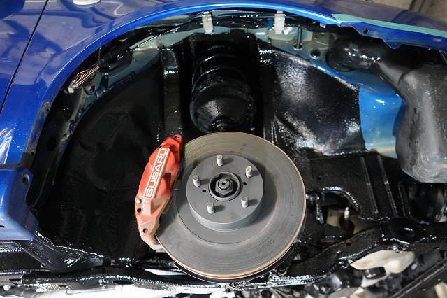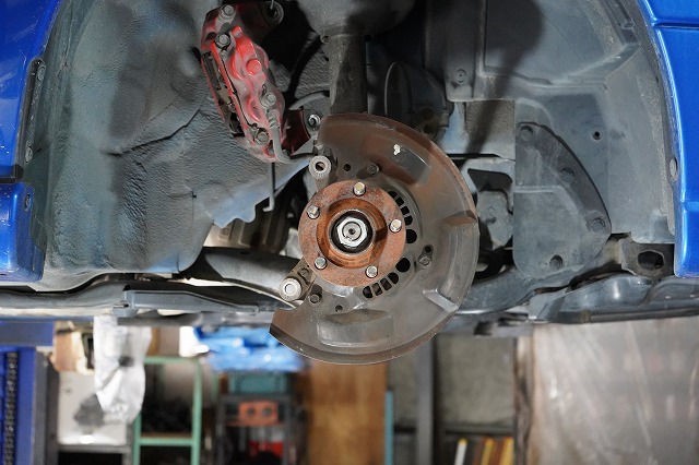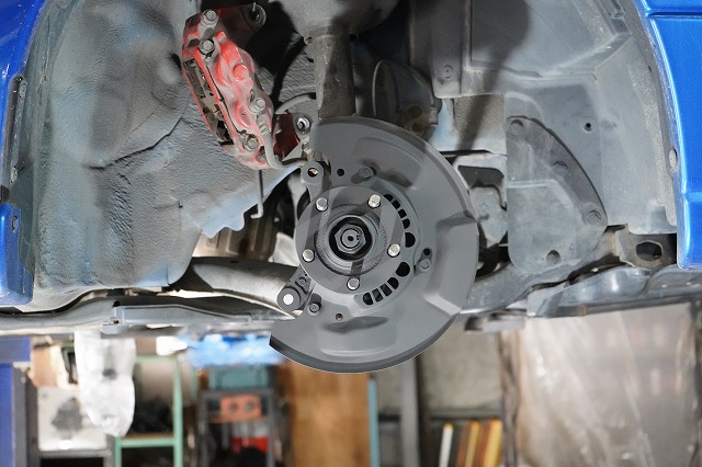 ブレーキキャリパー、ローターを外してブレーキのバックプレートにも耐熱塗装を施します