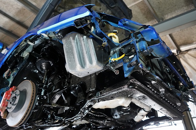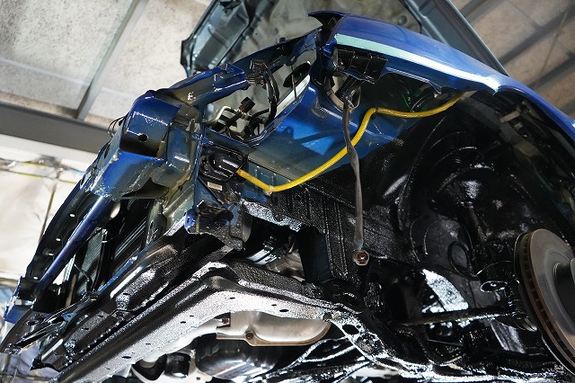 外板パネルの内部防錆を行った上で、前後バンパー、ライトユニット等を外して、普段は隠れた部分まで防錆するプレミアム コンプリートプラスでの施工です