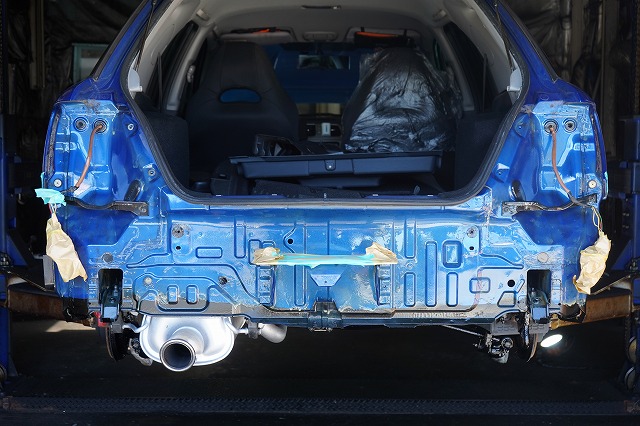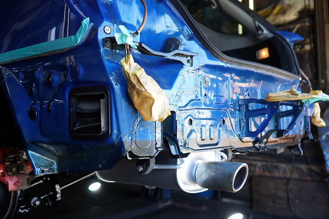 後ろ側も同じように、リアバンパーとテールレンズを外して防錆します