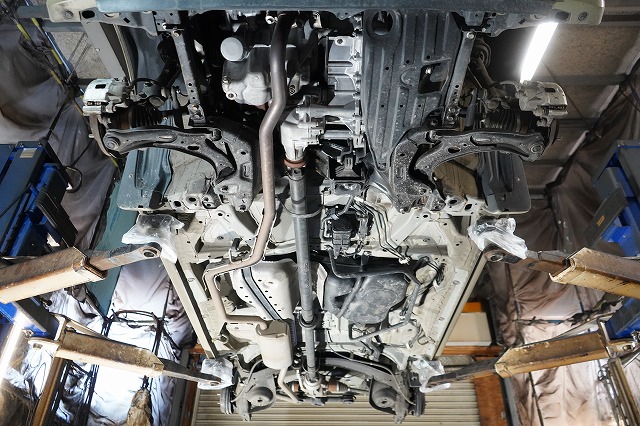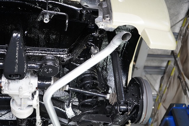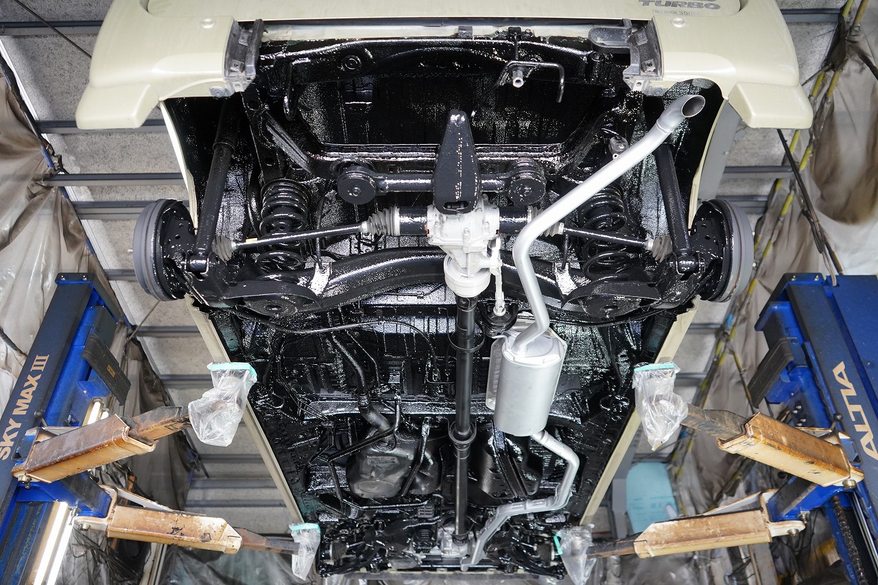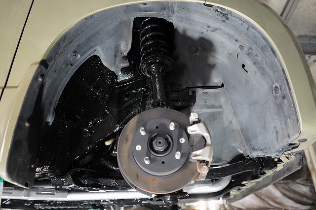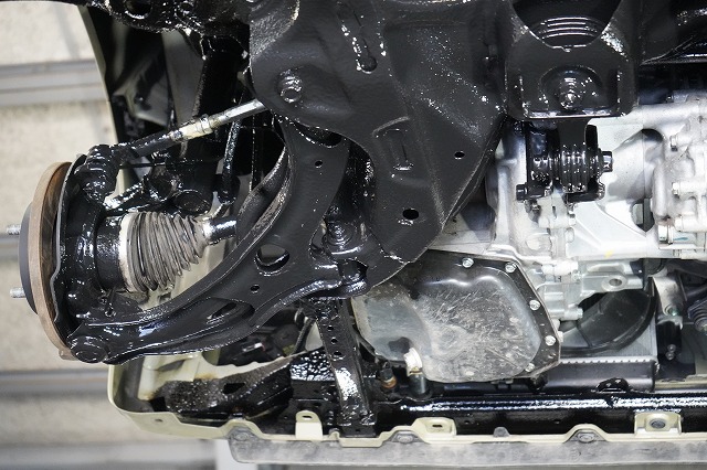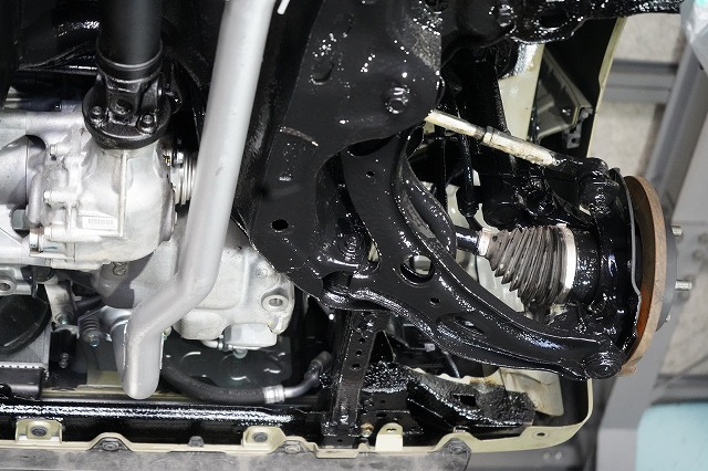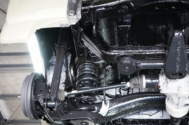 こちらのお車はサスペンションメンバー付近や足回りのアーム類、サスショックなどにWAX系の防錆剤が塗られているお車でした