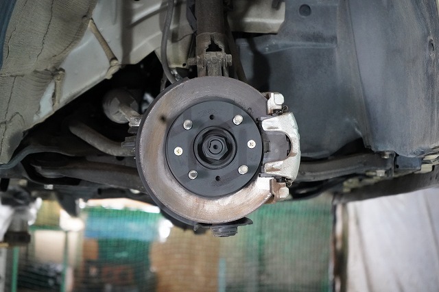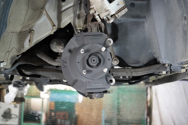 ブレーキキャリパー、ローターを外してブレーキのバックプレートにも耐熱塗装を施します