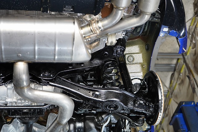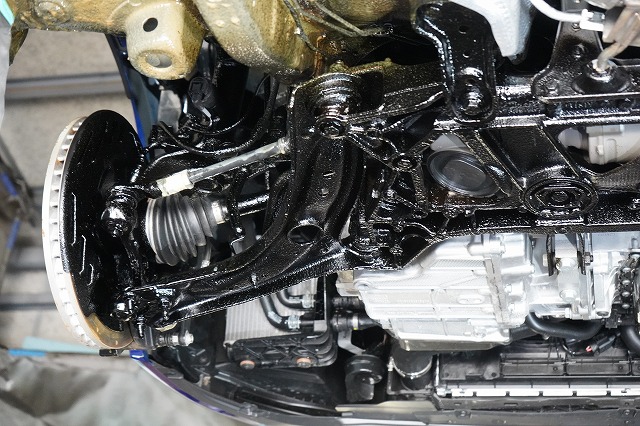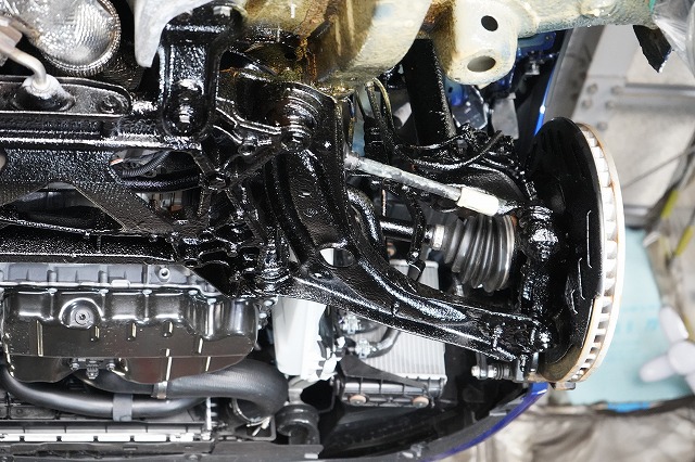 サスペンションメンバーや足回りのアーム類は油性のノックスドールUM1600を使用します