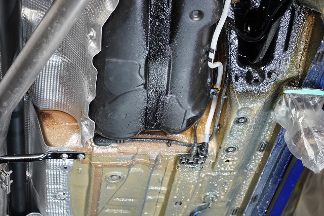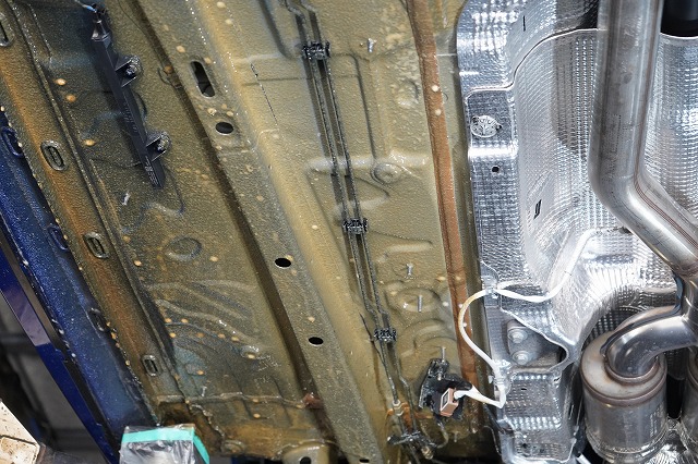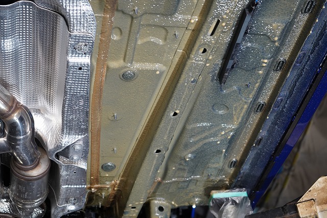 特にアンダーフレーム内への防錆剤の注入量は多く、パネルの継目からフロアに相当量滲み出ている状態でした