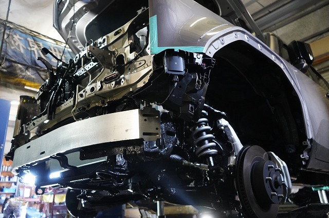 ドアパネルなどの外板パネルの内部防錆をした上で、前後バンパー、ライトユニット等を外して、普段は隠れた部分まで防錆するプレミアム コンプリートプラスでの施工です