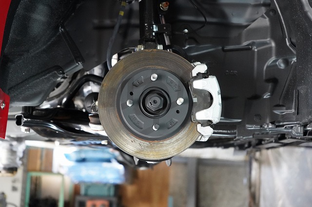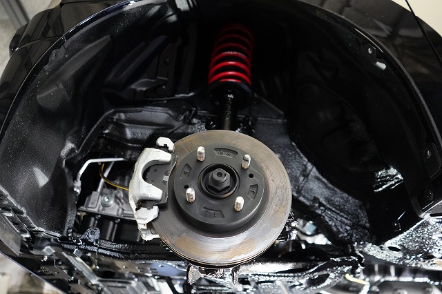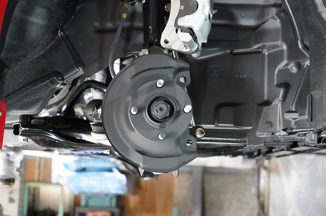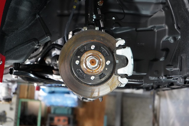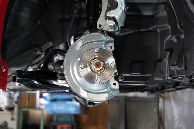 ブレーキキャリパー、ローターを外してブレーキのバックプレートにも耐熱塗装を施します