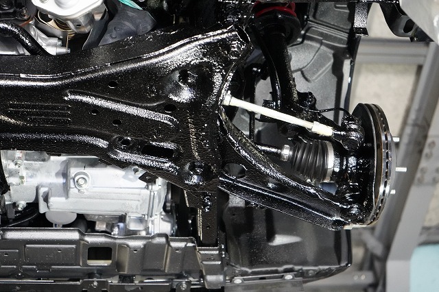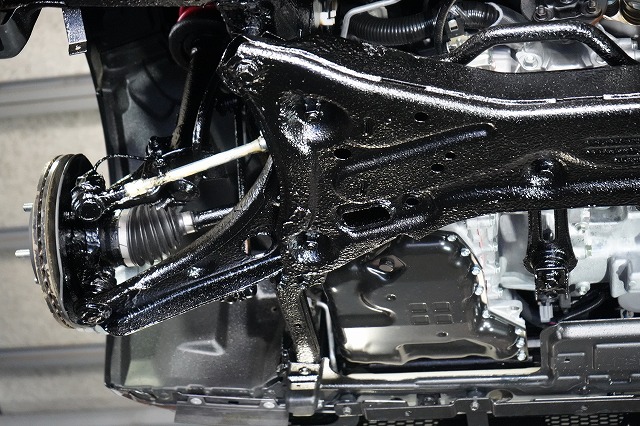 タイヤハウス内であってもサスペンションやショックアブソーバー、将来サビによる腐食で燃料漏れが起きやすい燃料ホースなどはノックスドールを塗っています