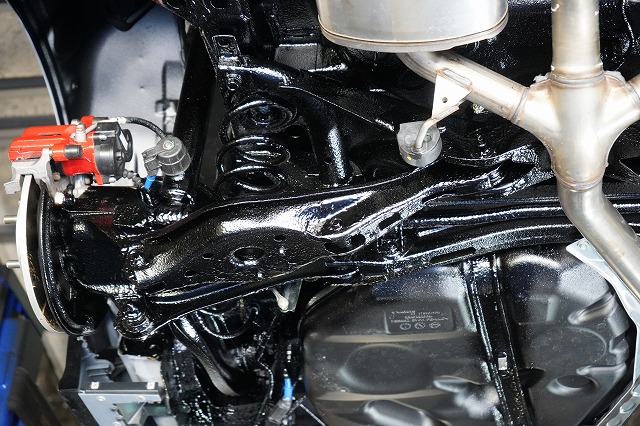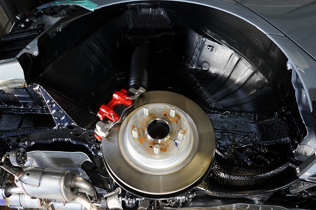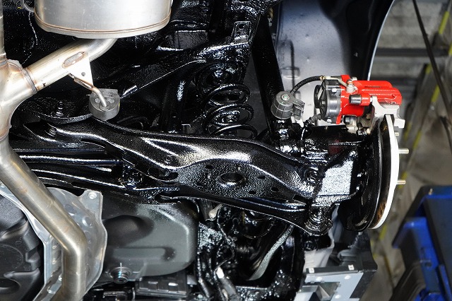 タイヤハウス内であってもサスペンションやショックアブソーバー、将来サビによる腐食で燃料漏れが起きやすい燃料ホースなどはノックスドールを塗っています