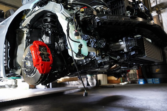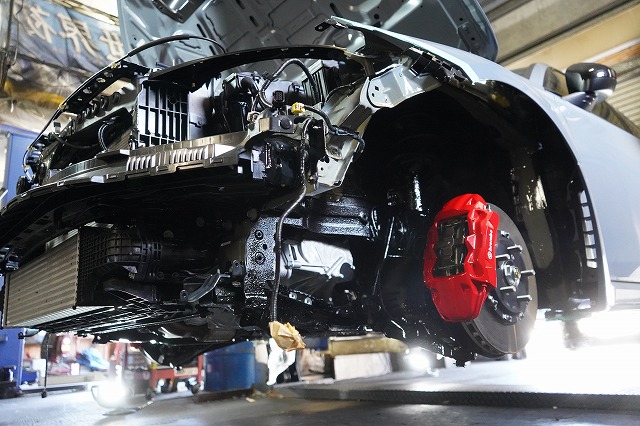 フロントバンパー、ヘッドライトユニット等を外して、普段は隠れている部分にも防錆します