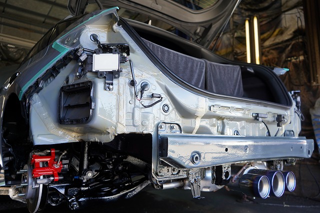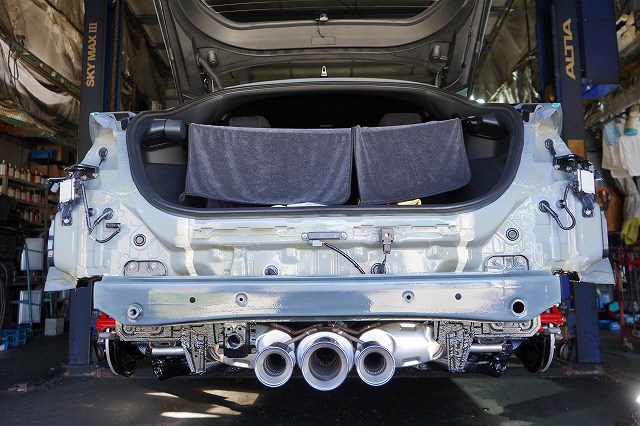 後ろ側も同じように、リアバンパーとテールレンズを外して防錆します