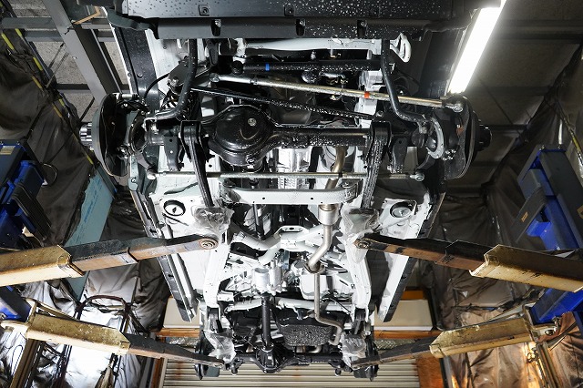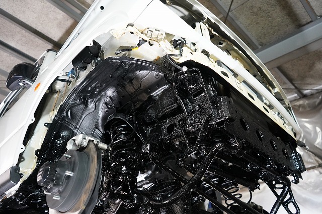 ドアパネルなど外板パネルの内部防錆を行った上で、前後バンパー、ライトユニット等を外して、普段は隠れた部分まで防錆するプレミアム コンプリートプラスでの施工です