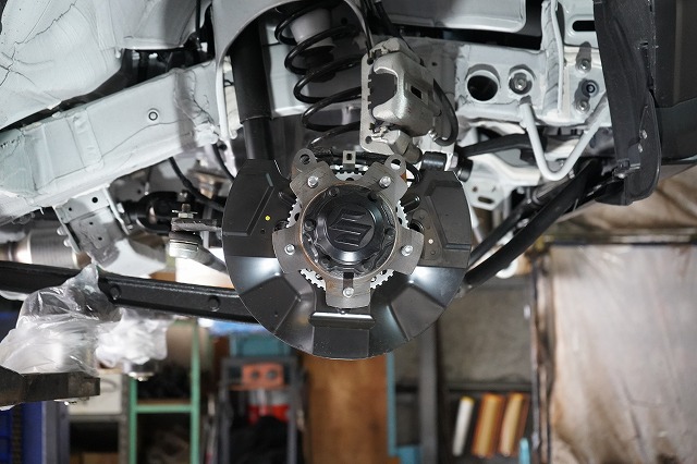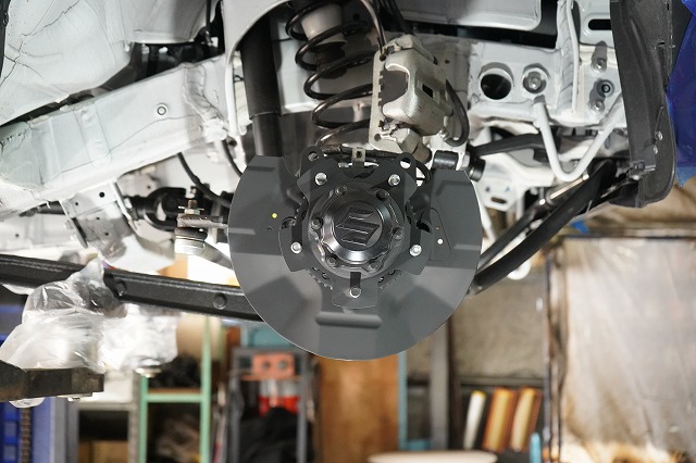 ブレーキキャリパー、ローターを外してブレーキのバックプレートにも耐熱塗装を施します