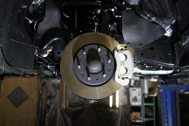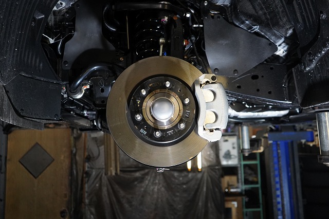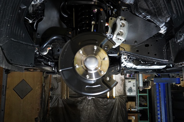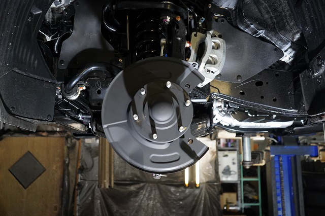 ブレーキキャリパー、ローターを外してブレーキのバックプレートにも耐熱塗装を施します
