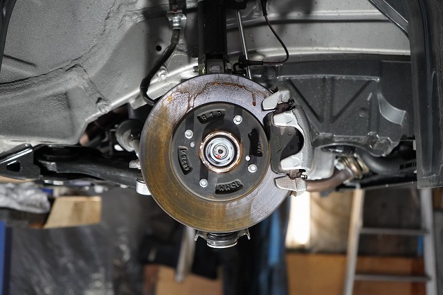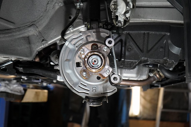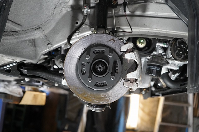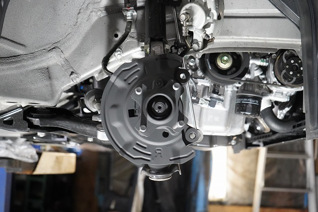 ブレーキキャリパー、ローターを外してブレーキのバックプレートにも耐熱塗装を施します