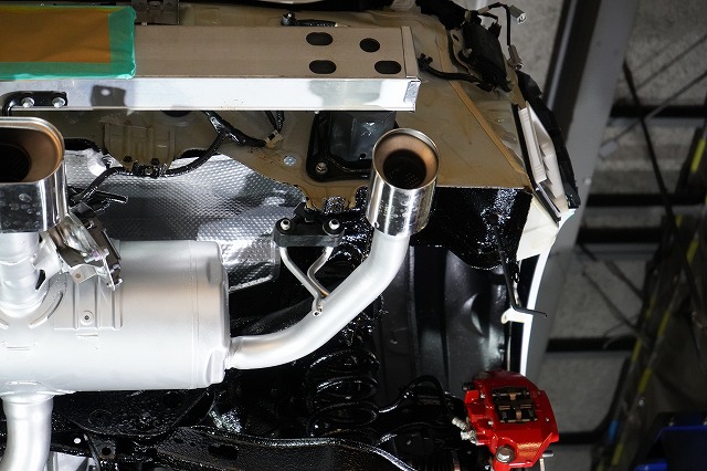 マフラーは一旦外して耐熱塗装を施します