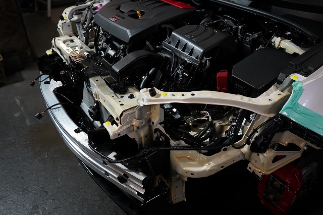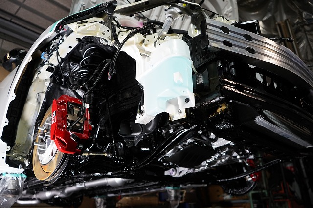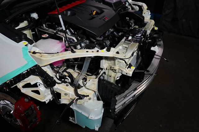 ドアパネルなど外板パネルの内部防錆を行った上で、前後バンパー、ライトユニット等を外して、普段は隠れた部分まで防錆するプレミアム コンプリートプラスの施工です