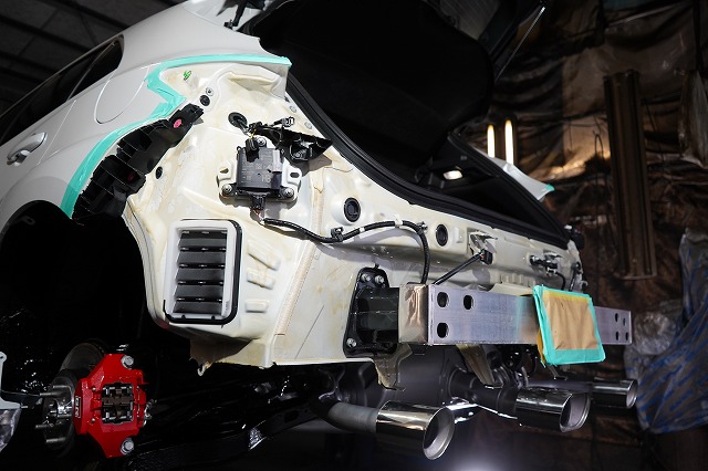 後ろ側も同じように、リアバンパーとテールレンズを外して防錆します