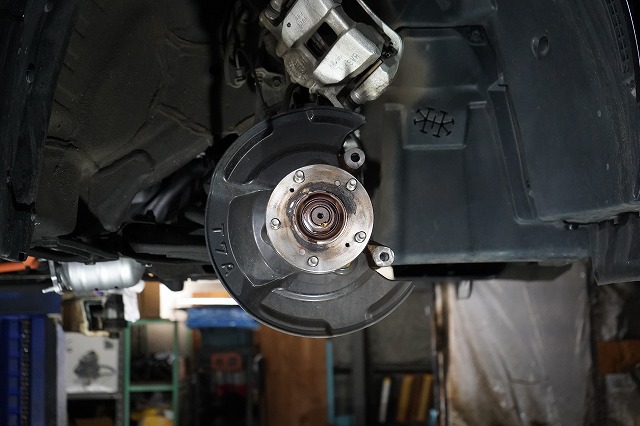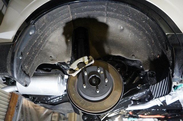 ブレーキキャリパー、ローターを外してブレーキのバックプレートにも耐熱塗装を施します