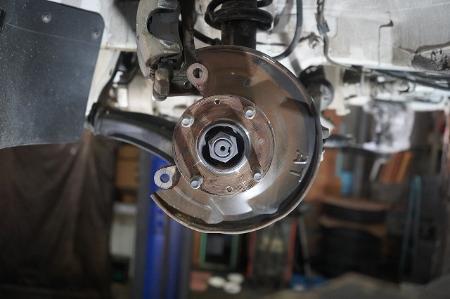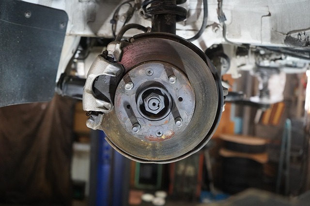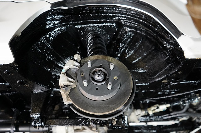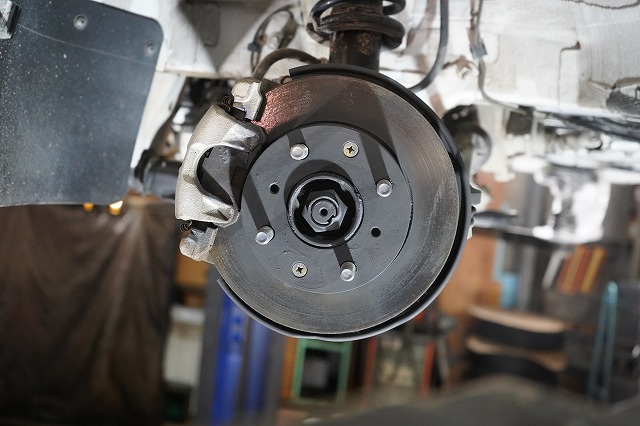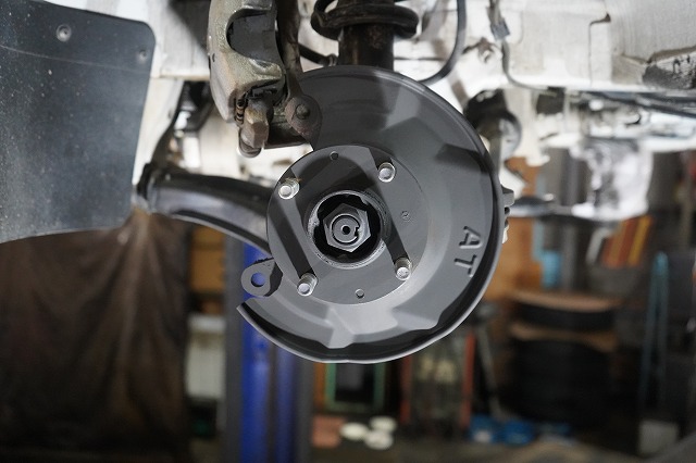 ブレーキキャリパー、ローターを外してブレーキのバックプレートにも耐熱塗装を施します