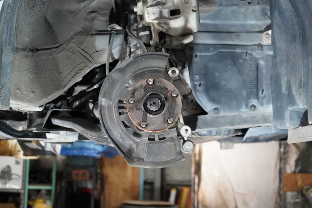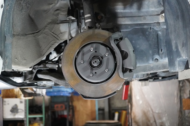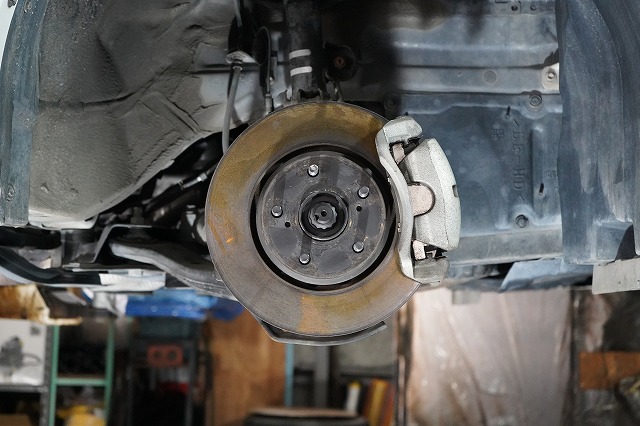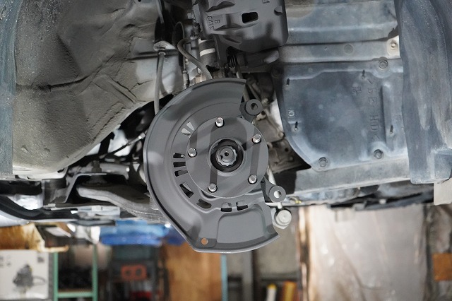 ブレーキキャリパー、ローターを外してブレーキのバックプレートにも耐熱塗装を施します