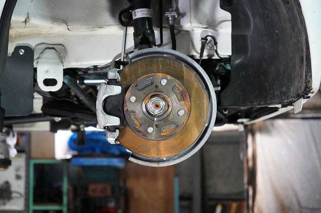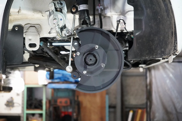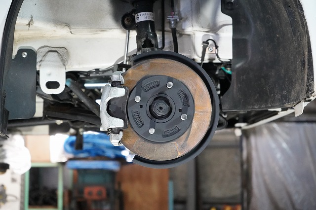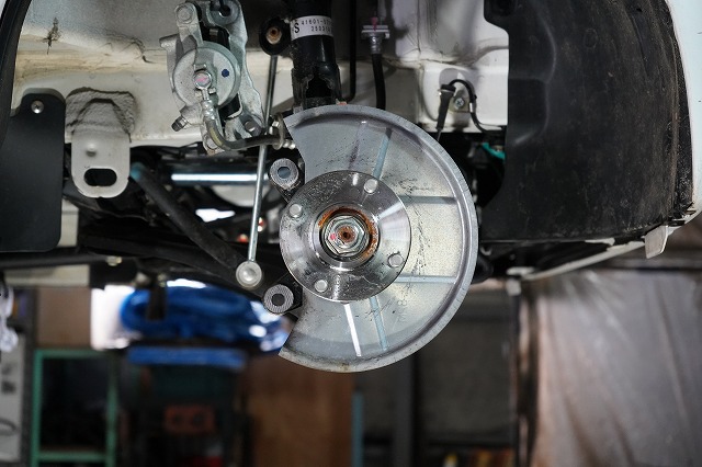 ブレーキキャリパー、ローターを外してブレーキのバックプレートにも耐熱塗装を施します