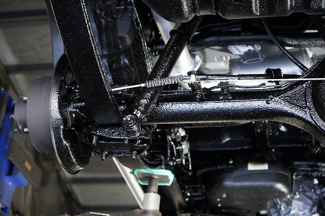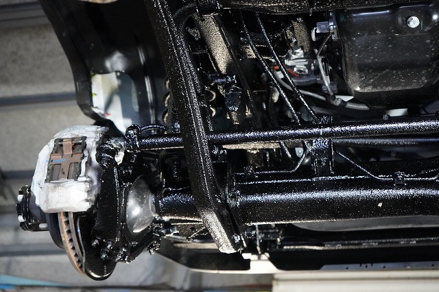 タイヤハウス内であってもサスペンションやショックアブソーバー、将来サビによる腐食で燃料漏れが起きやすい燃料ホースなどはノックスドールを塗っています