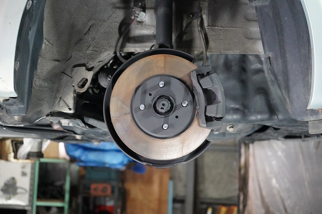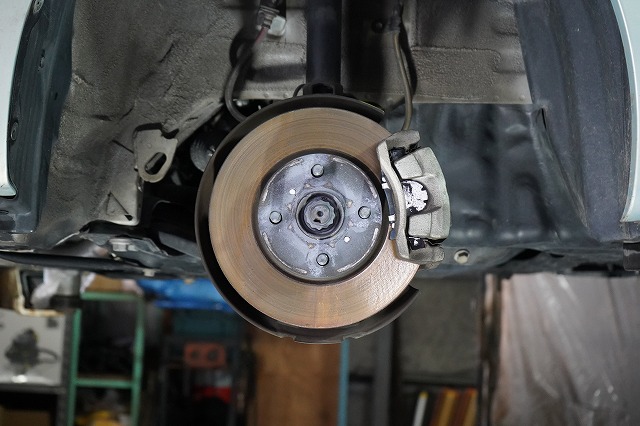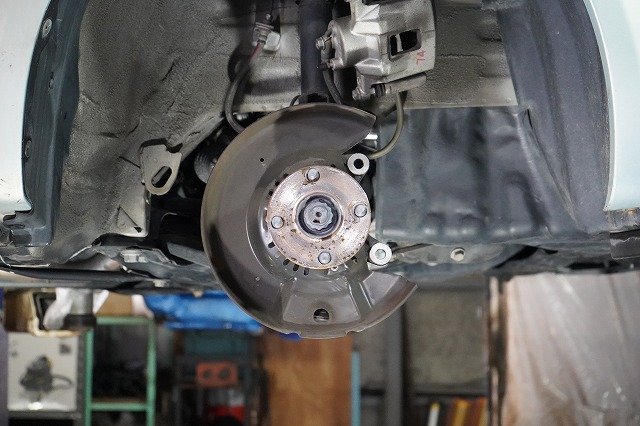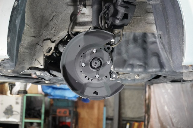 ブレーキキャリパー、ローターを外してブレーキのバックプレートにも耐熱塗装を施します