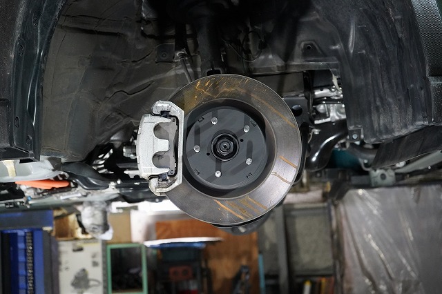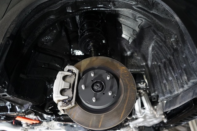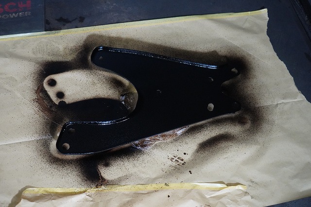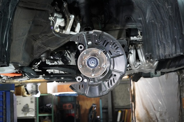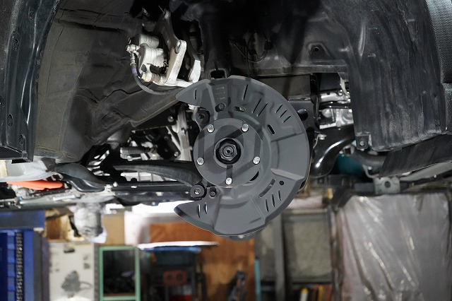 ブレーキキャリパー、ローターを外してブレーキのバックプレートにも耐熱塗装を施します