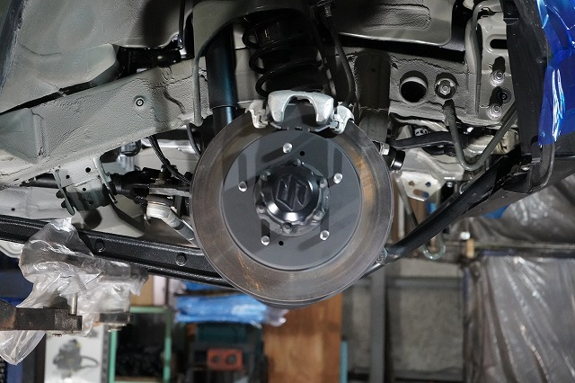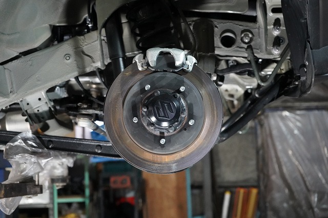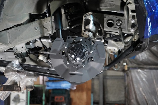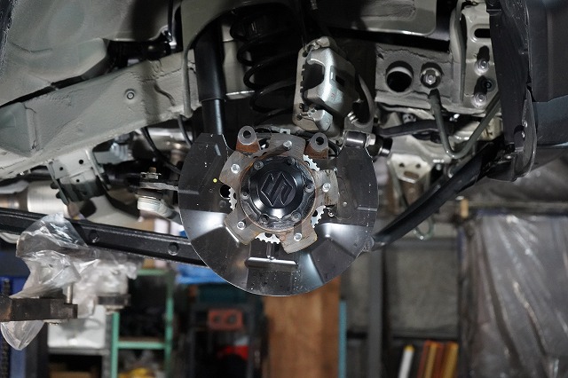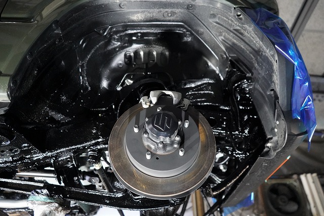 ブレーキキャリパー、ローターを外してブレーキのバックプレートにも耐熱塗装を施します