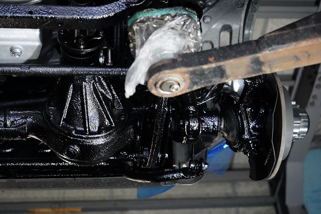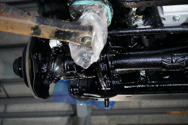 タイヤハウス内であってもサスペンションやショックアブソーバー、将来サビによる腐食で燃料漏れが起きやすい燃料ホースなどはノックスドールを塗っています