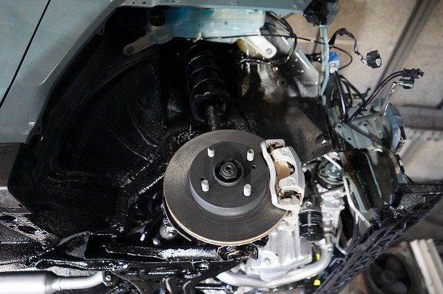タイヤハウス内であってもサスペンションやショックアブソーバー、将来サビによる腐食で燃料漏れが起きやすい燃料ホースなどはノックスドールを塗っています