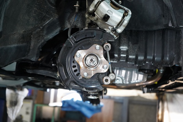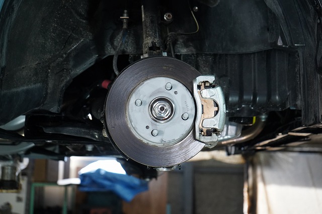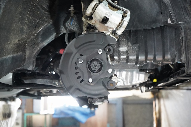 ブレーキキャリパー、ローターを外してブレーキのバックプレートにも耐熱塗装を施します