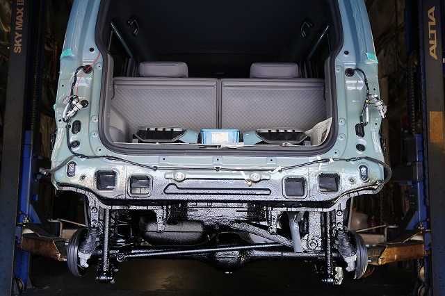 ドアパネルなどの外板パネルの内部防錆を行った上で、前後バンパー、ライトユニット等を外して普段は隠れた部分まで防錆するプレミアム コンプリートプラスでの施工です