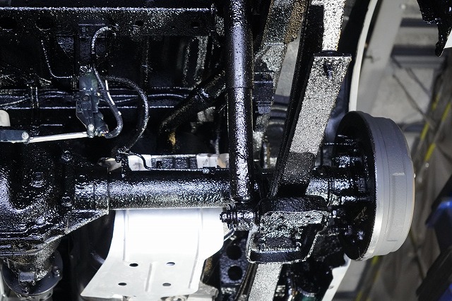 タイヤハウス内であってもサスペンションやショックアブソーバー、将来サビによる腐食で燃料漏れが起きやすい燃料ホースなどはノックスドールを塗っています