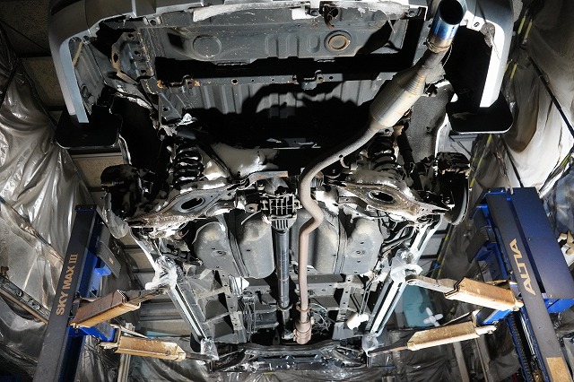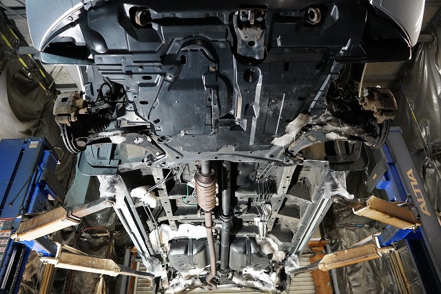 過去にWAX系の防錆剤が塗られているお車への再施工です