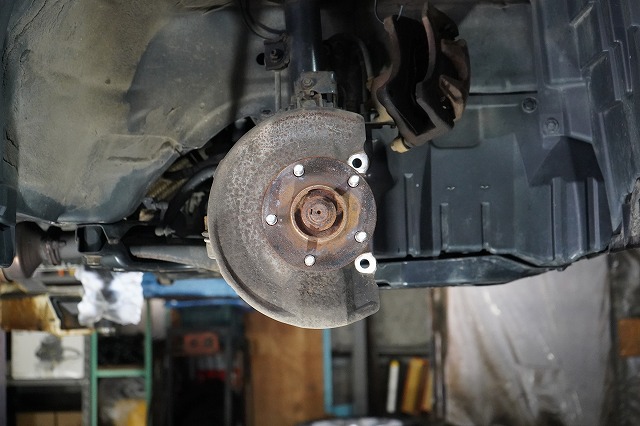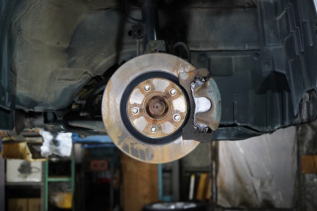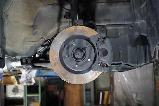 ブレーキキャリパー、ローターを外してブレーキのバックプレートにも耐熱塗装を施します
