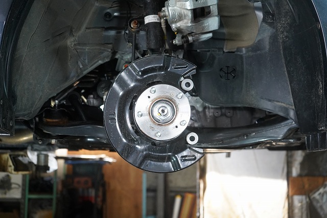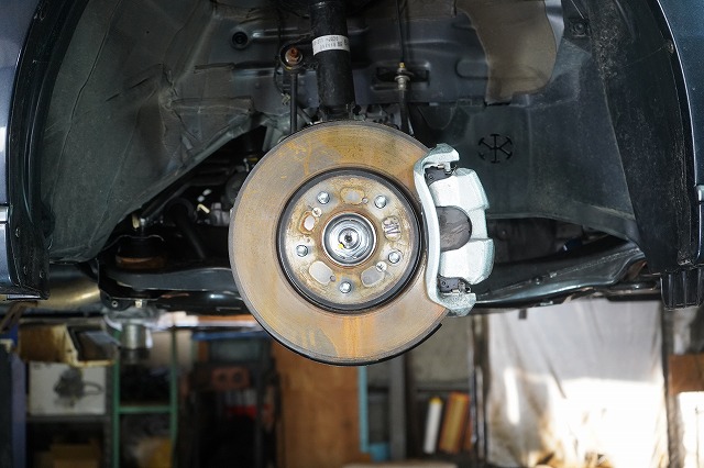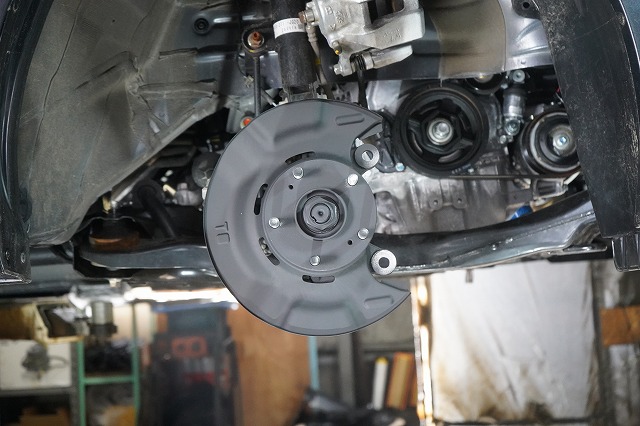 ブレーキキャリパー、ローターを外してブレーキのバックプレートにも耐熱塗装を施します