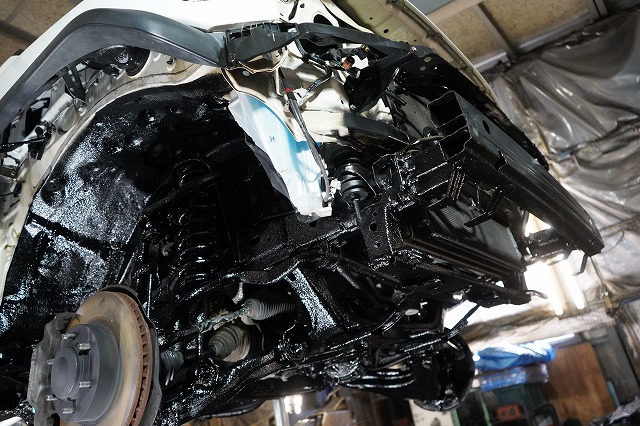 ドアパネルやボンネットフードなど、外板パネルの内部防錆を行った上で、前後バンパー、ライトユニット等を外して普段は隠れた部分まで防錆するプレミアム コンプリートプラスでの施工です