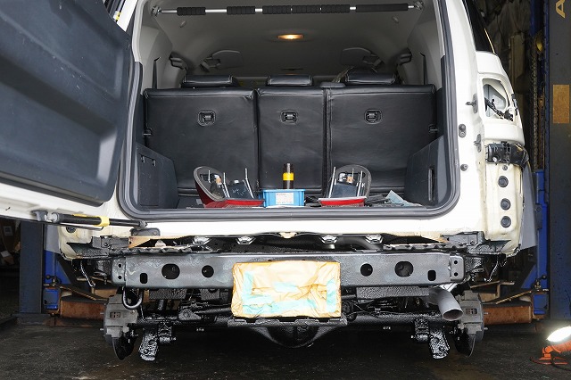 後ろ側も同じように、リアバンパーとテールレンズを外して防錆します