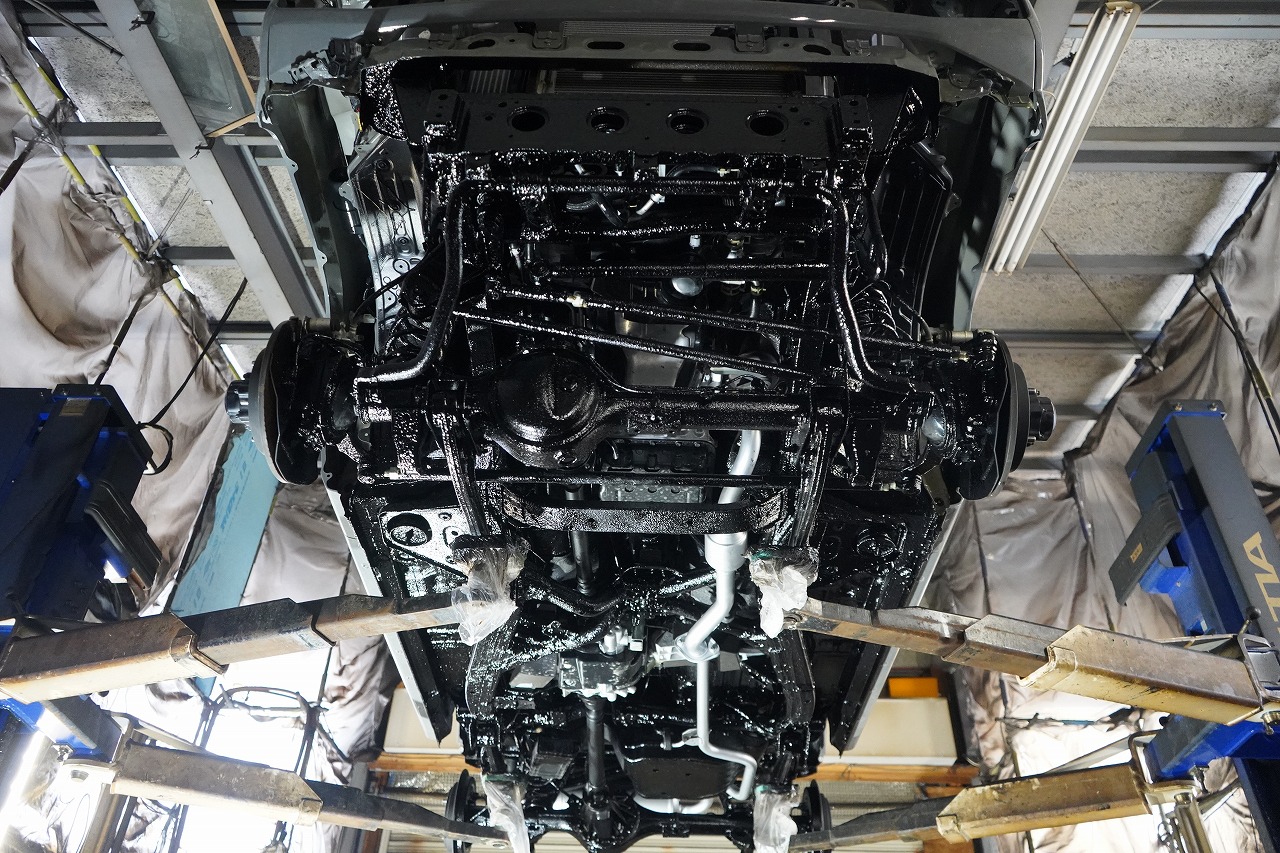 ドアパネルなどの外板パネルの内部防錆を行った上で、前後バンパー、ライトユニット等を外して普段は隠れた部分まで防錆するプレミアム コンプリートプラスでの施工です