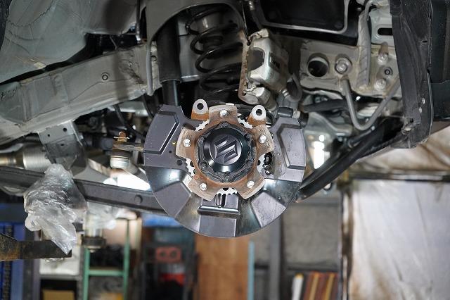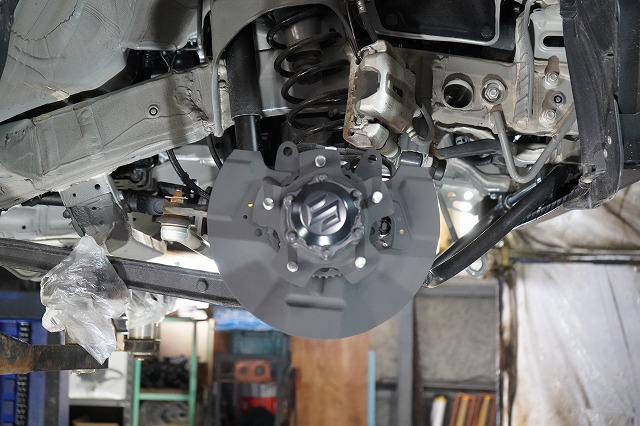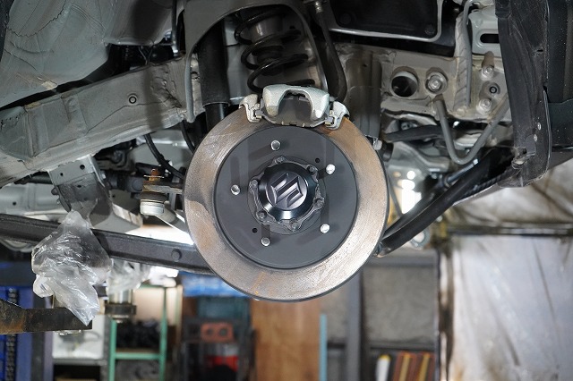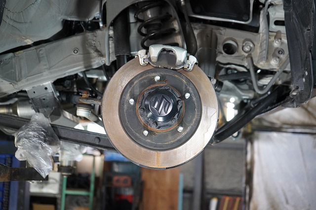 ブレーキキャリパー、ローターを外してブレーキのバックプレートにも耐熱塗装を施します