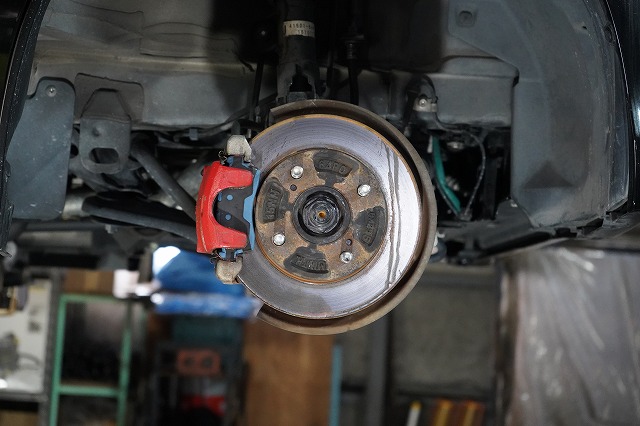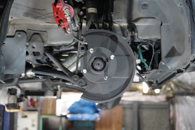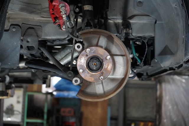 ブレーキキャリパー、ローターを外してブレーキのバックプレートにも耐熱塗装を施します