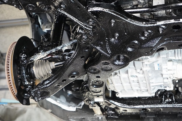新車時に油性の防錆剤が塗られているお車への再施工です