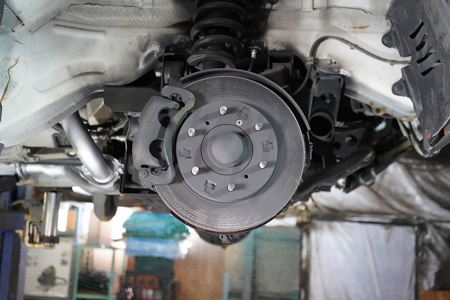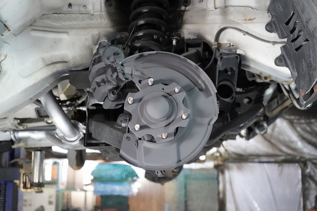 ブレーキキャリパー、ローターを外してブレーキのバックプレートにも耐熱塗装を施します