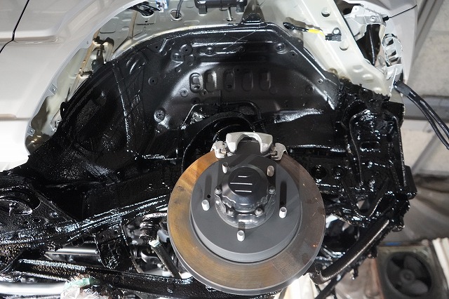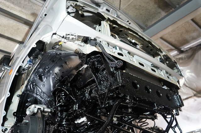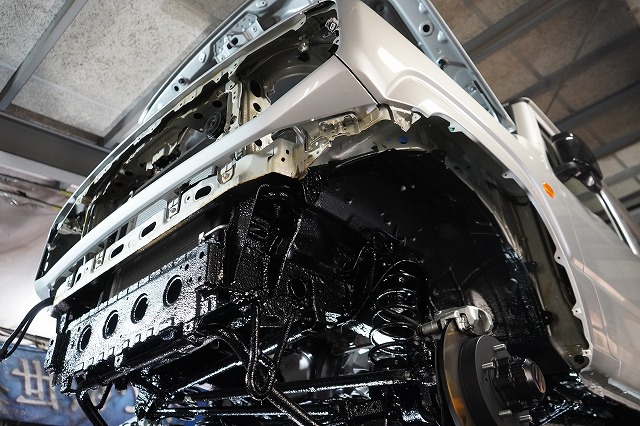ドアパネルなどの外板パネルの内部防錆を行った上で、前後バンパー、ライトユニット等を外して普段は隠れた部分まで防錆するプレミアム コンプリートプラスでの施工です