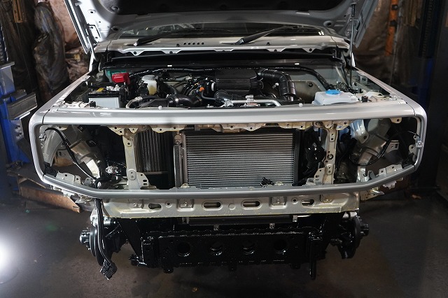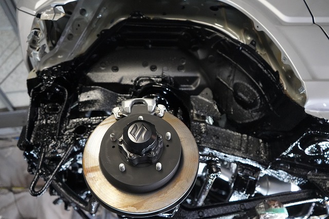 フロントバンパー、ヘッドライトユニット等を外して、普段は隠れている部分にも防錆します