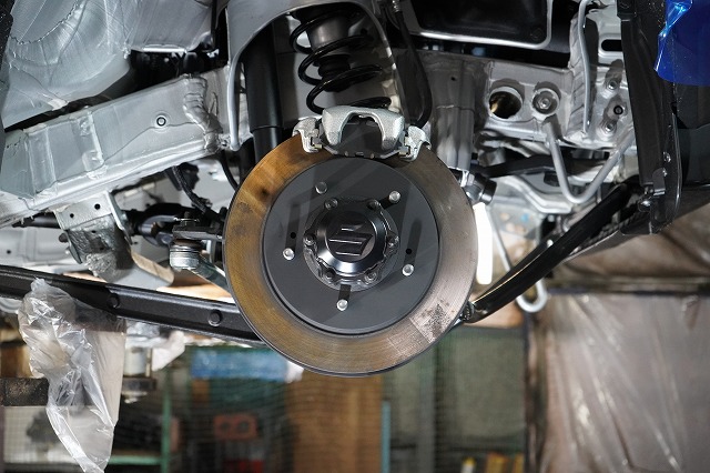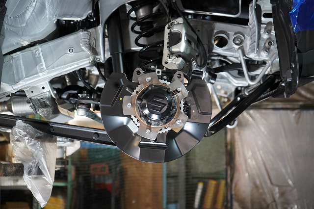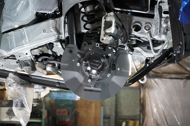 ブレーキキャリパー、ローターを外してブレーキのバックプレートにも耐熱塗装を施します