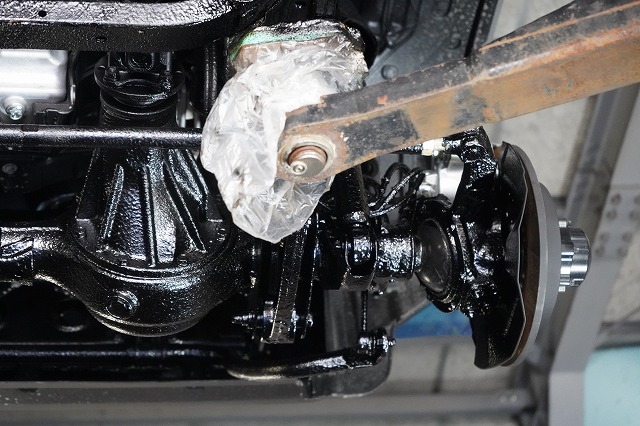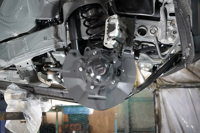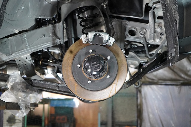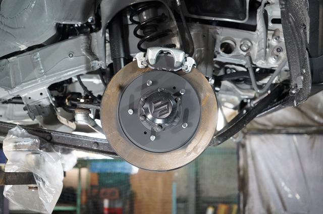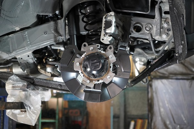 ブレーキキャリパー、ローターを外してブレーキのバックプレートにも耐熱塗装を施します