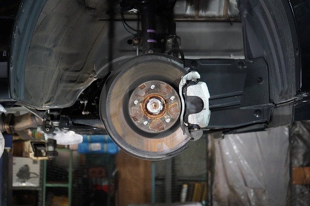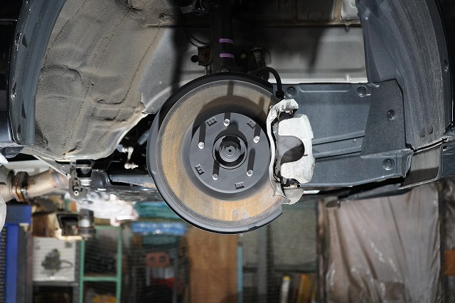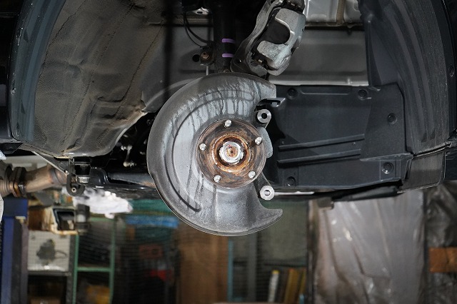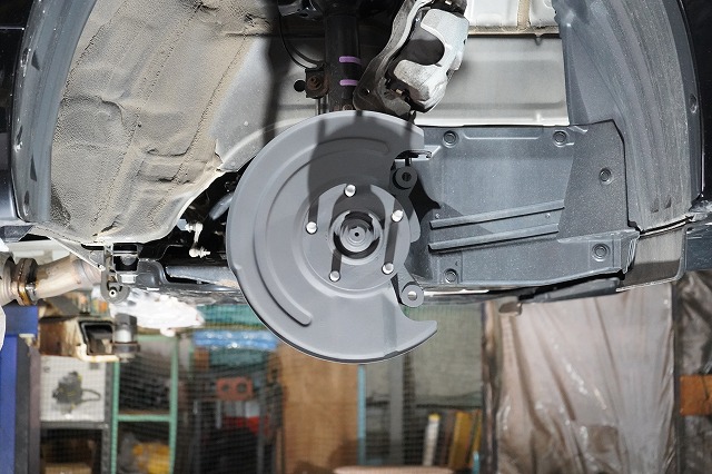 ブレーキキャリパー、ローターを外してブレーキのバックプレートにも耐熱塗装を施します