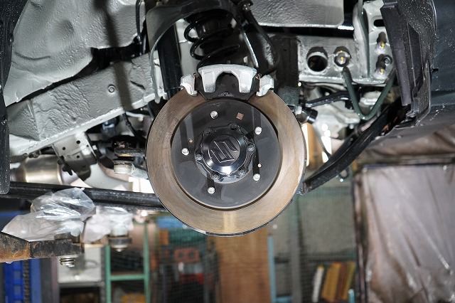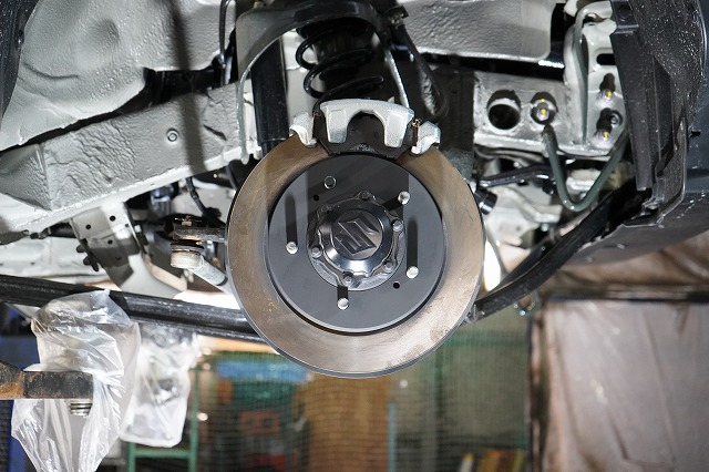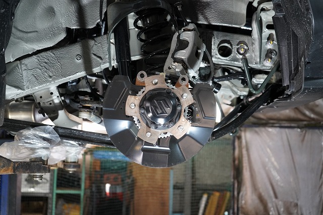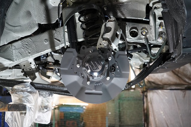 ブレーキキャリパー、ローターを外してブレーキのバックプレートにも耐熱塗装を施します