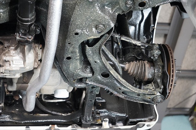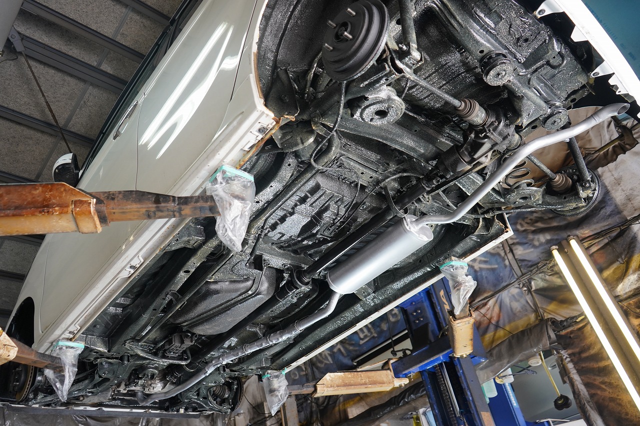 過去にWAX系の防錆剤が塗られているお車への再施工です